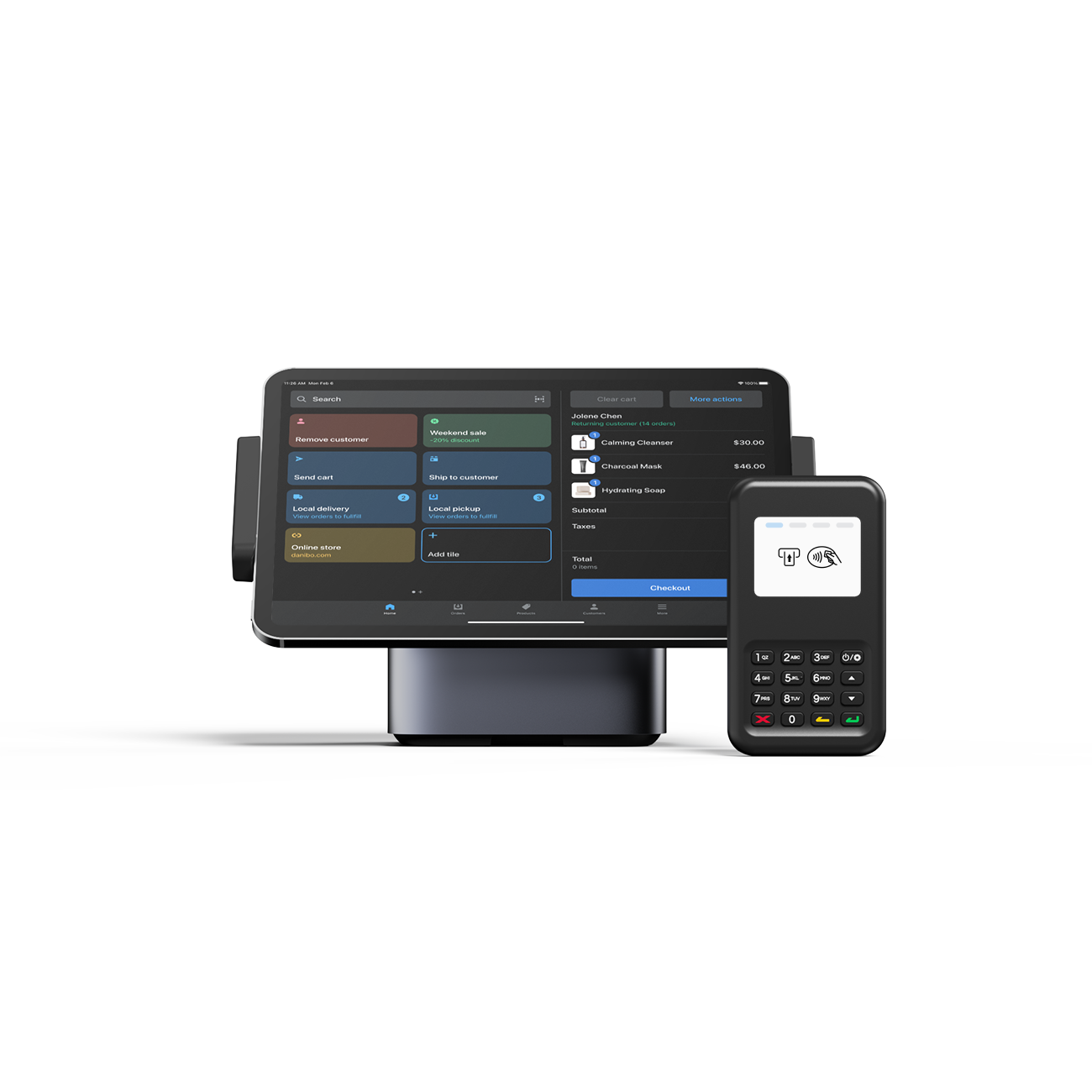 All‑in‑One Countertop Kit: Combines card reader and tablet stand for a streamlined setup
